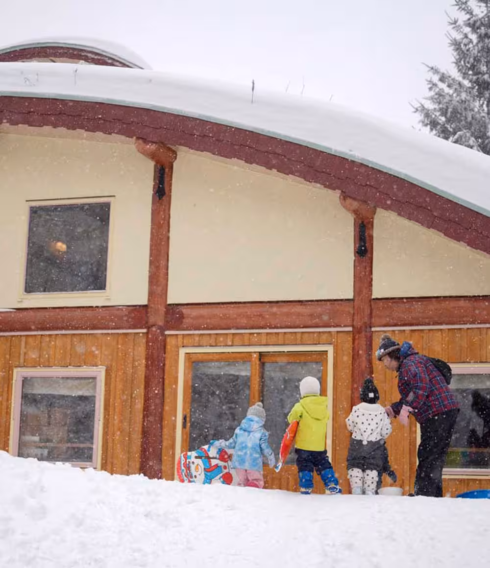 森の家保育園の園舎は、フォレストとカントリーの2つ。どちらも身体への優しさにとことんこだわり、室内は全て木で造りました。森の家の名の通り、まるで森の中で暮らしているような空間です。