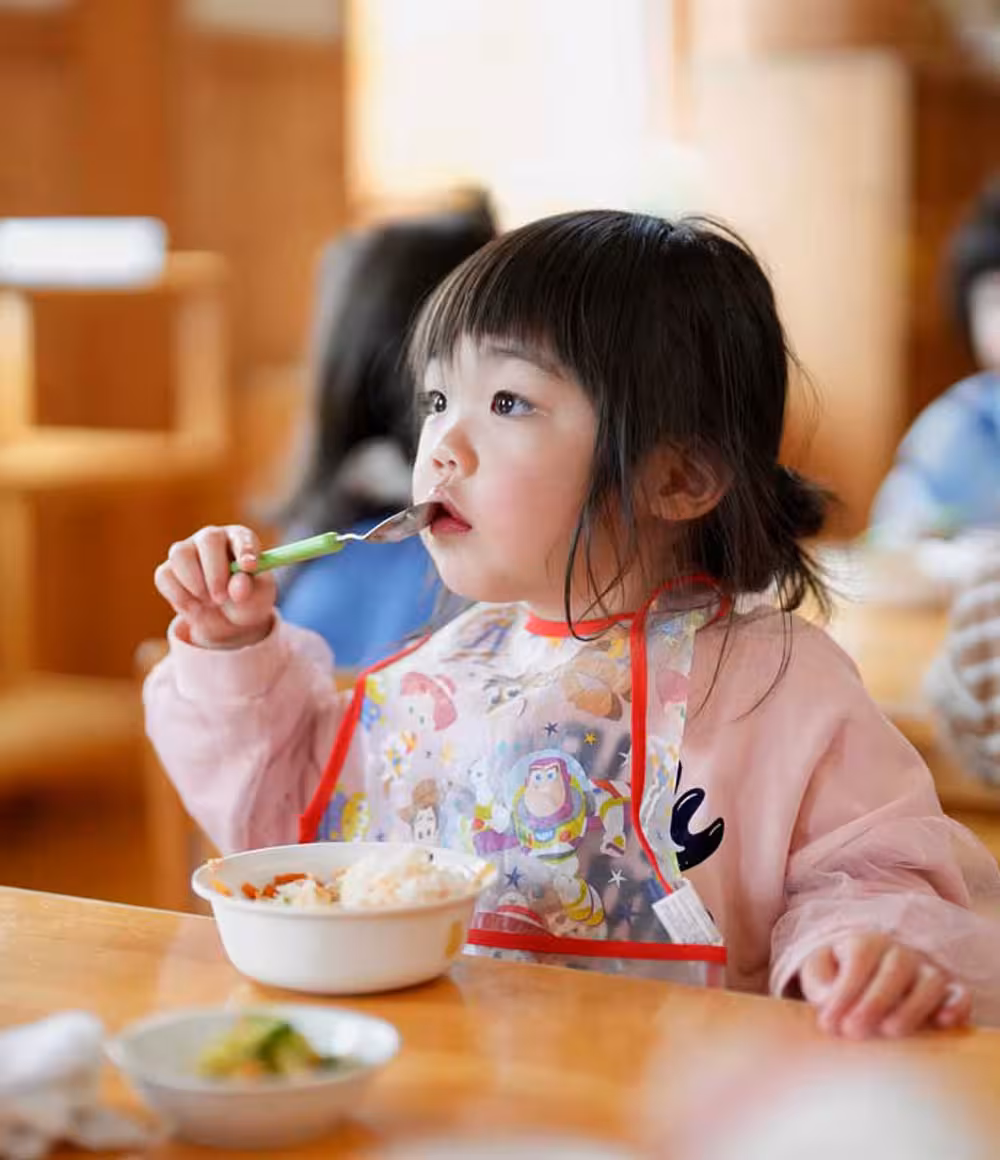 魚料理や季節の食材も大切にし、栄養士が考えた給食を提供。2歳からは噛む力を育むため歯ごたえのある食事も取り入れ、好き嫌いを防ぐ工夫もしています。