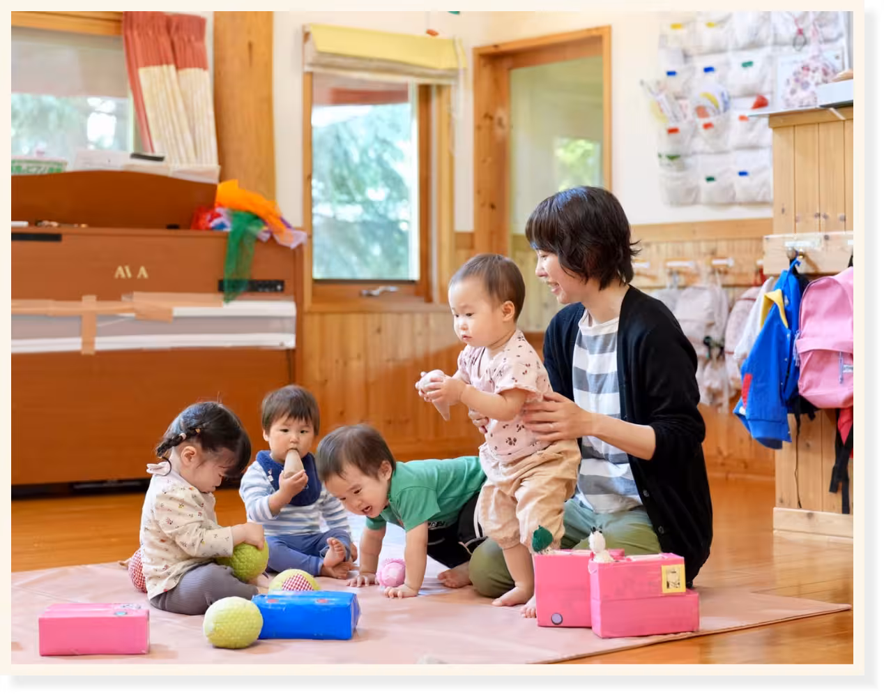 大地太陽森の家保育園は、0〜2歳児・定員30名の小規模保育園です。